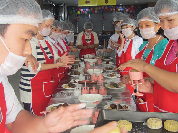 走進(jìn)世博大廈服務(wù)中心,鮮花隨處可見,華美的裝修設(shè)計(jì)使人心曠神怡,現(xiàn)場充滿了濃郁的節(jié)日氛圍。大家熱情高漲、十分投入,和面、搟皮,包餡,然后刷上蛋液,撒上芝麻,最后烘烤出爐。員工們邊動(dòng)手制作月餅邊盡情享用自己的“完美作品”,并拍照留念,記錄下了許多歡樂的瞬間。而現(xiàn)場專業(yè)的月餅師傅則耐心地傳授制作月餅的要領(lǐng),聽得大伙頻頻點(diǎn)頭。另外,除了可以親手制作月餅,還可現(xiàn)場烘焙,讓員工們可現(xiàn)場品嘗至自己制作的月餅,活動(dòng)現(xiàn)場處處洋溢著溫馨和美的氣氛……
